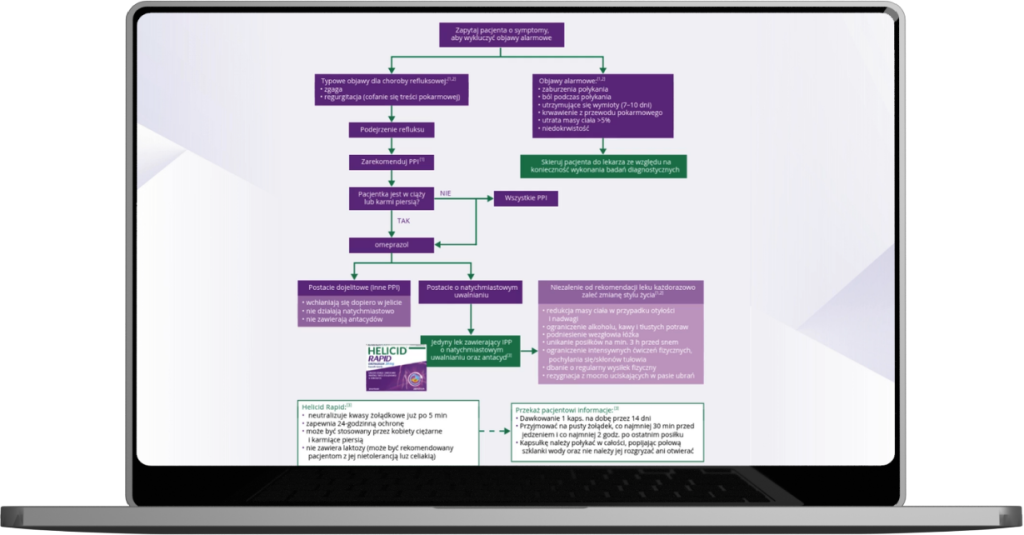 Leczenie objawów refluksu np. zgagi, zarzucania kwaśnej treści żołądkowej
