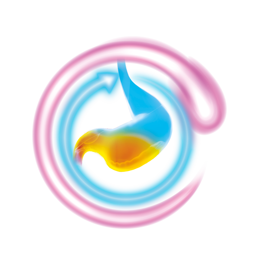 Współdziałanie omeprazolu i wodorowęglanu sodu zapewnia szybką neutralizację kwasu żołądkowego w ciągu 5 minut i 24-godzinną ochronę błony śluzowej.[4] Dzięki temu: